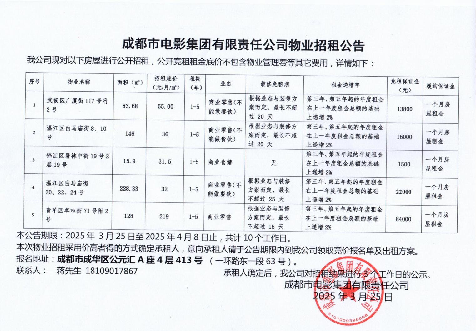 成都市電影集團有限責(zé)任公司物業(yè)招租公告