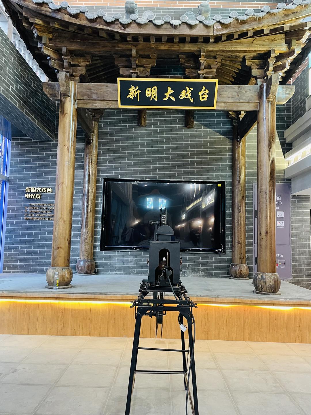 除了展出大量史料,復(fù)業(yè)后的新明電影院在影院設(shè)計上,也承襲了“老”新明電影院的元素。影院設(shè)立了“新明大戲臺”,而1924年新明電影院開業(yè)時使用的同款放映機也格外醒目。